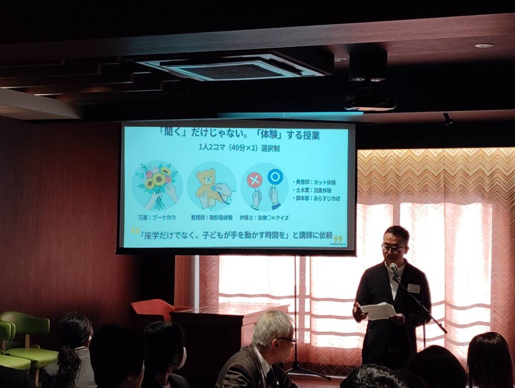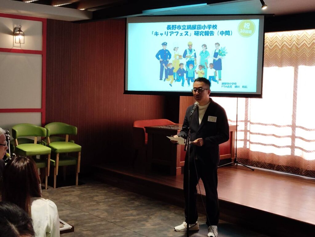 今年で10回目を迎えるキャリアフェスは、聴くだけではなく体験する授業を、多彩な講師陣を迎え、12職種の職業を学んでいます。この「鍋屋田モデル」は、近隣のPTAと連携できる可能性を感じる素晴らしい内容で、他校のPTAの取り組みを共有できることこそ郡市PTA連合会の強みであると改めて感じました。
